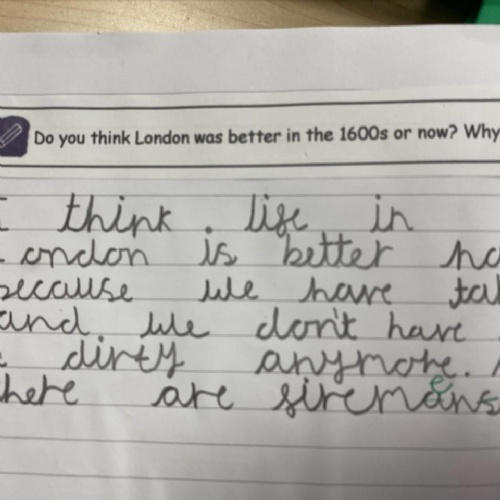 In Key Stage 1, pupils develop their understanding of the past – beginning with familiar objects and places within living memory before moving beyond living memory. Pupils study toys, transport and the seaside in Year 1. They then further develop their understanding of the past by studying the lives of significant individuals both nationally and internationally as well as studying a significant event beyond living memory. Pupils study Kings and Queens, The Great Fire of London and significant individuals who have made a difference in Year 2.