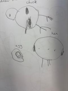 Nursery have been mark making inspired by the stories we have looked at and more recently our chicks hatching. They have been working hard to label their pictures with the initial sounds they know!