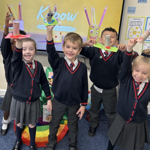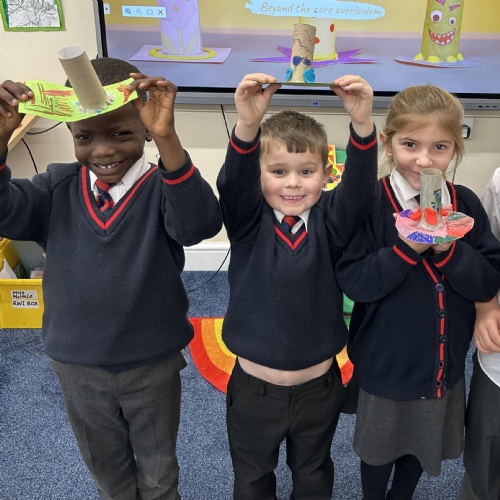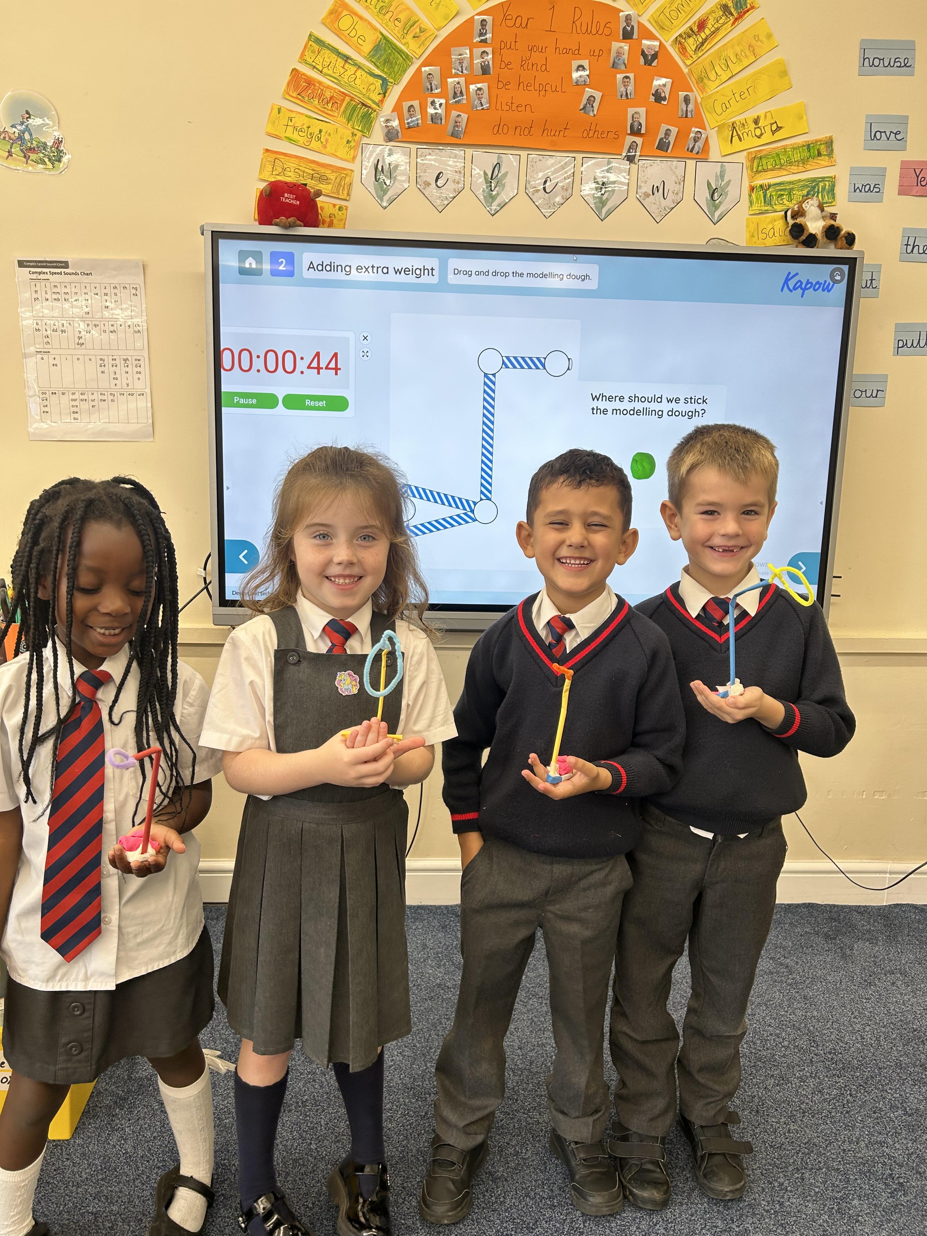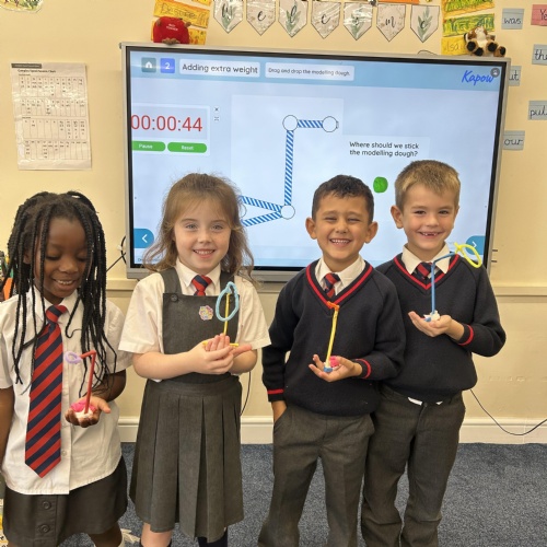 Stable Structures - We have been exploring how to build stable and unstable towers. Year 1 found out that a wide base makes structures stable.