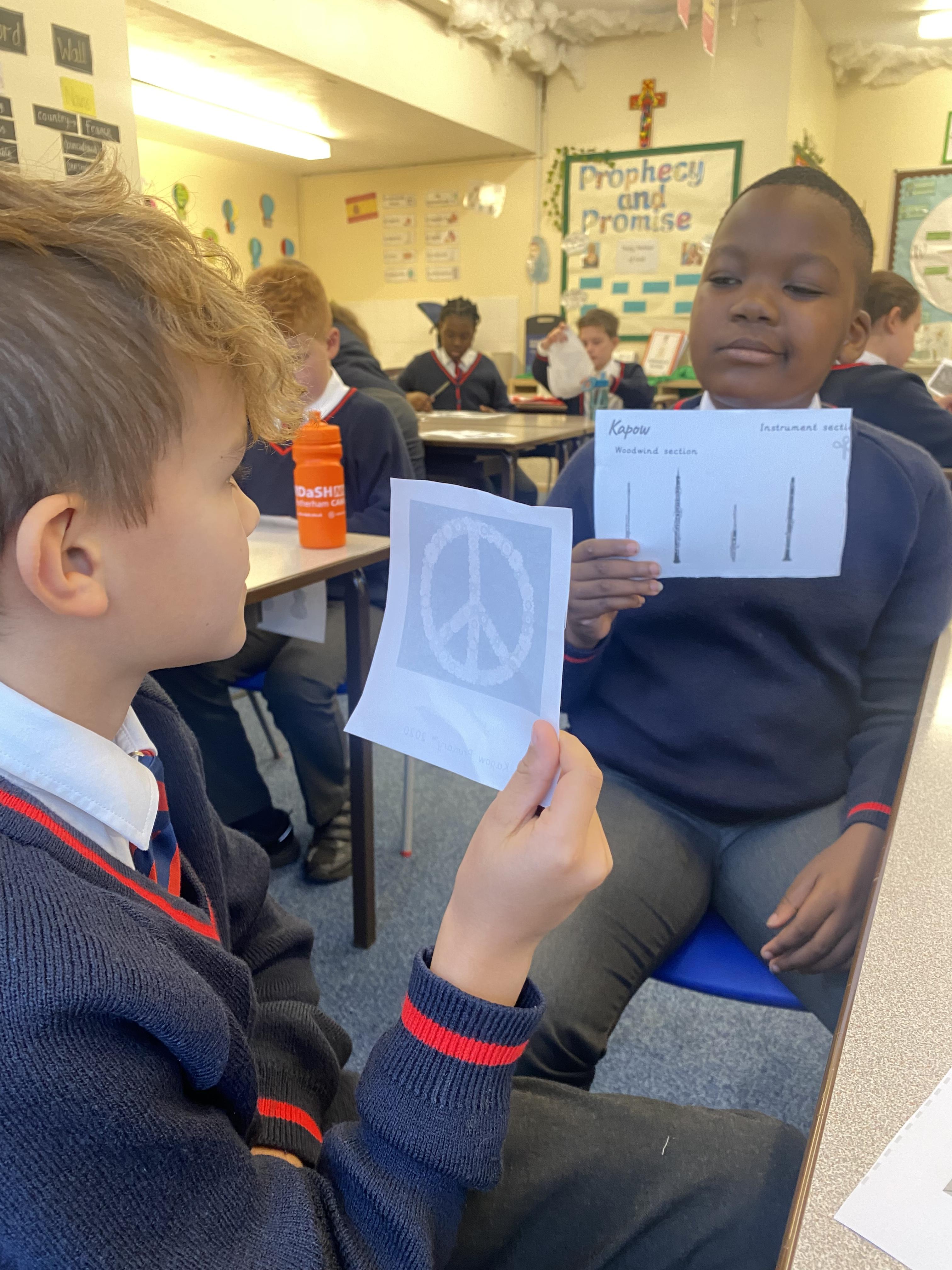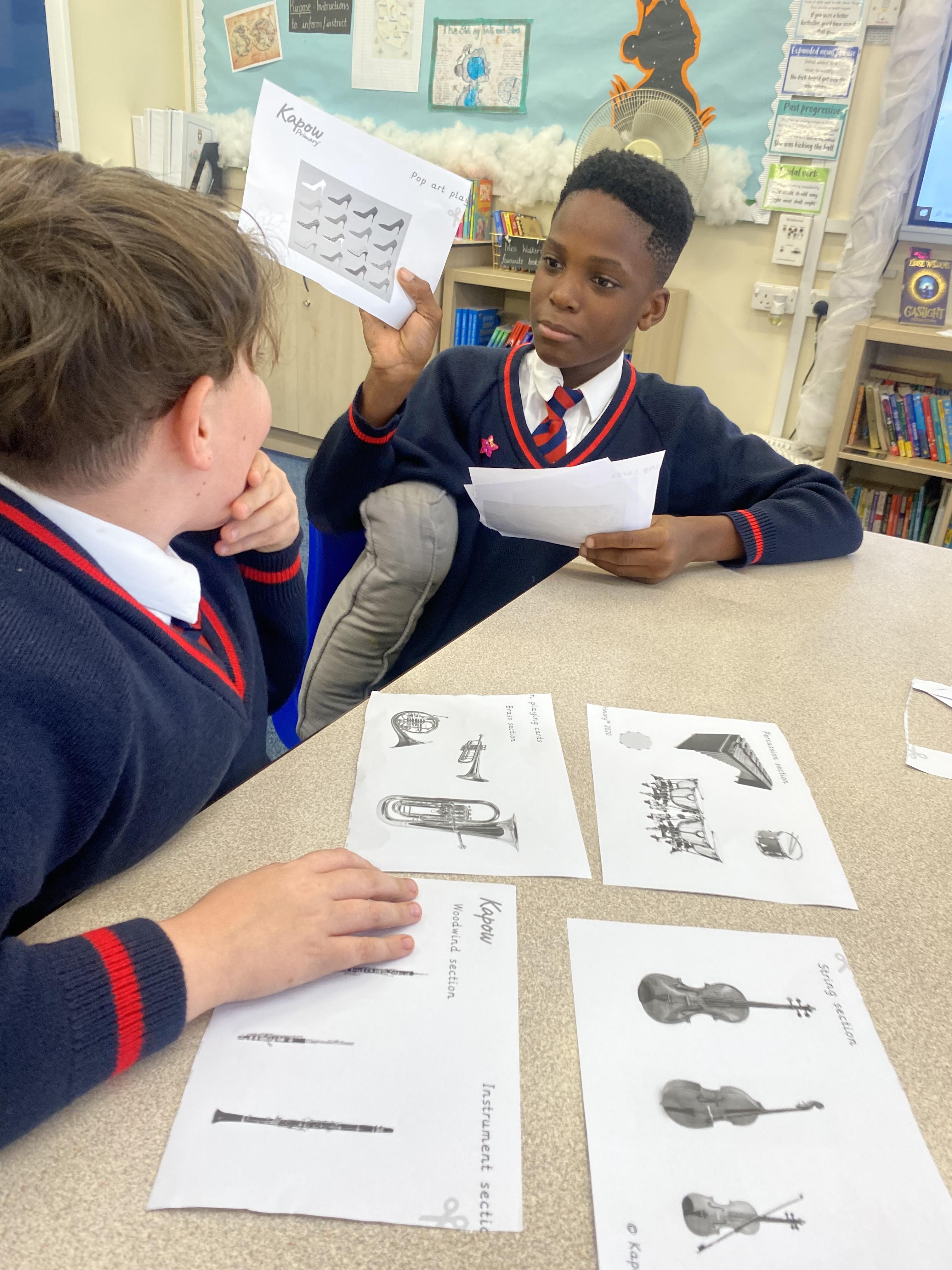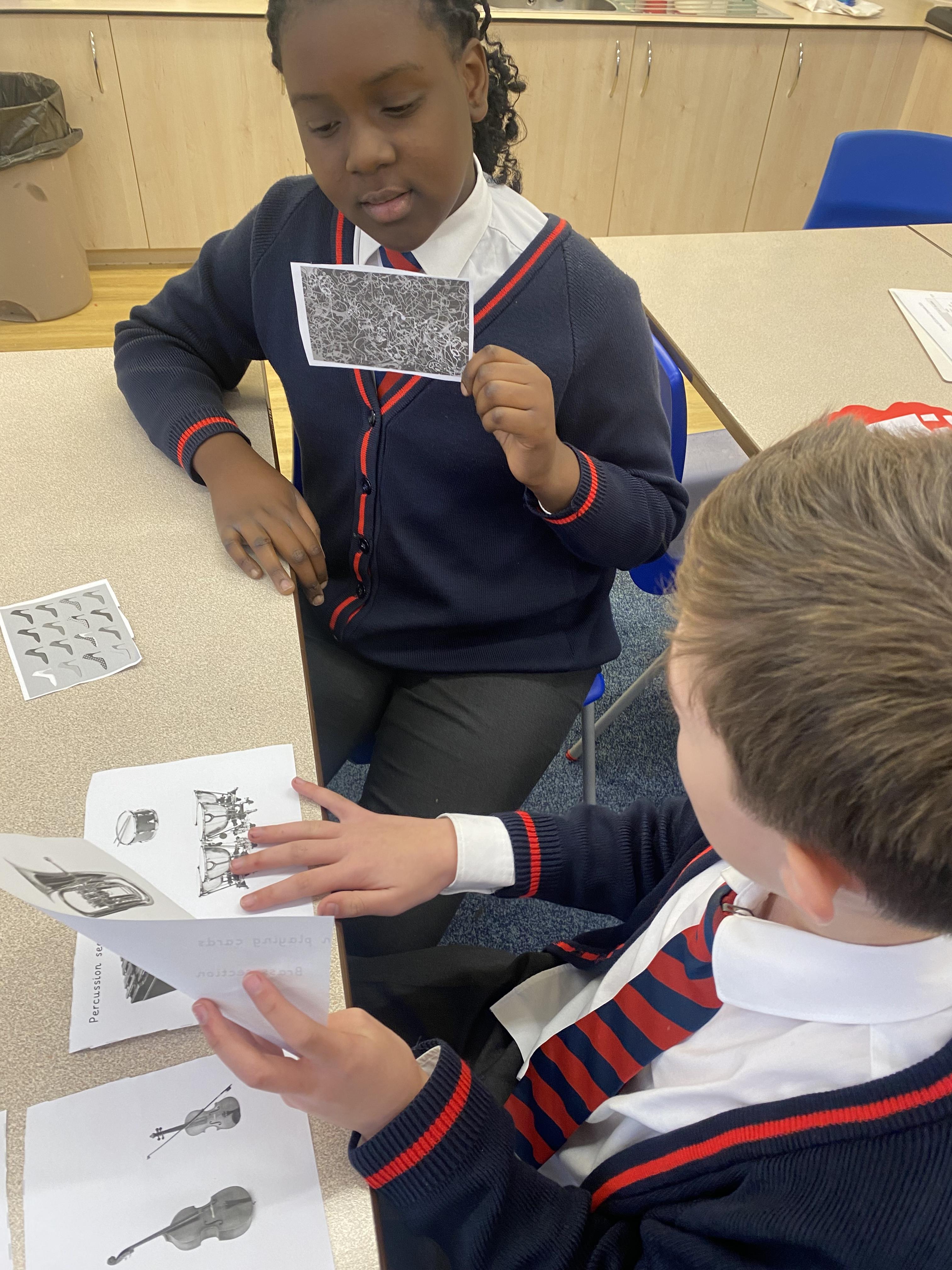 Matching parts of an orchestra to pop art images