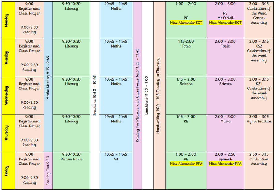 Our Class Timetable: